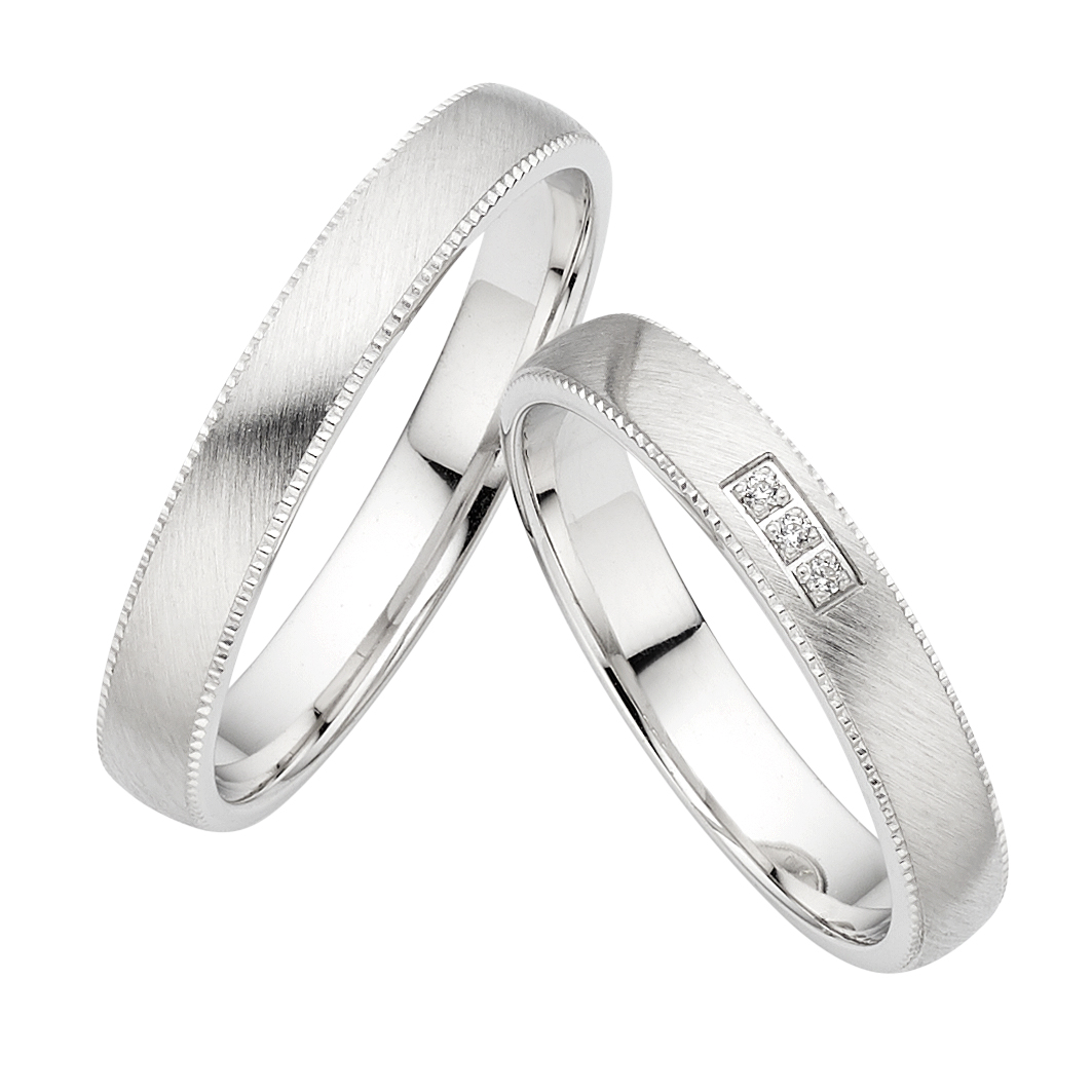 Der einfarbige TRAURINGWUNDER-Ring TWMG 11 ist Weißgold mittig in diagonal feinmatt, mit äußeren Rändern in Millgriffoptik und hat eine Breite von 3,5mm sowie eine Höhe von 1,4mm. Der wunderschöne Damenring besticht durch 3 Brillanten mittig aneinander im Verschnitt eingefasst mit einer Gesamtsteingröße von 0,015 carat in der Qualität TW/SI. Die Ringe sind innen bombiert und außen leicht bombiert. Erleben Sie unser Modell TWMG 11 bei einem TRAURINGWUNDER-Partner vor Ort oder bestellen Sie die Ringe hier im Shop. Unsere Hotline steht Ihnen bei Fragen und für Beratung gerne zur Verfügung.