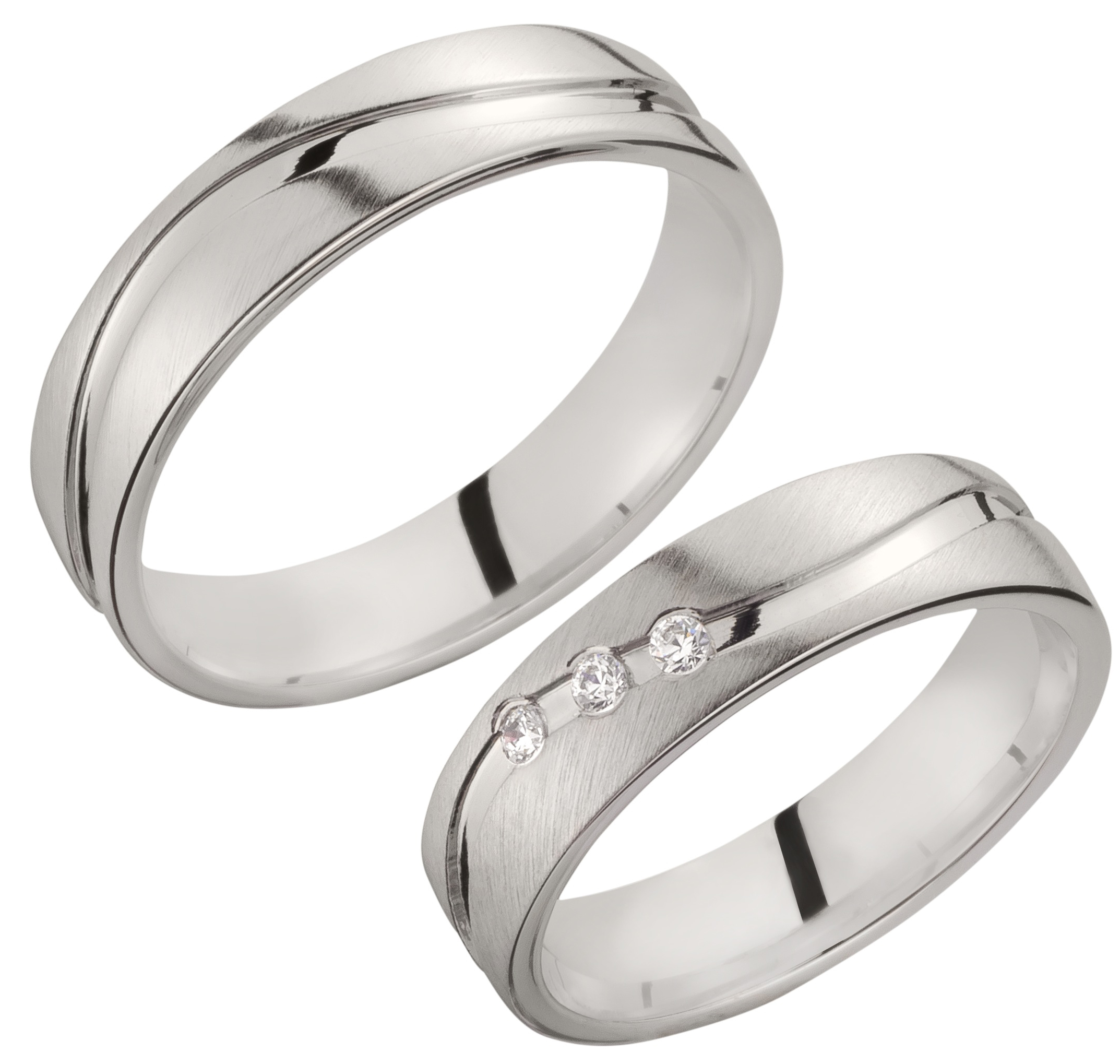 Der einfarbige TRAURINGWUNDER-Ring TWSR 63, Weißgold schräg feinmatt mit einer welligen eckigen Fuge in Hochglanz um den Ring verlaufend, hat eine Breite von 5mm und eine Höhe von 1,6mm. Der wunderschöne Damenring besticht durch 3 Brillanten eingerieben mit einem Abstand mittig in der eckigen Fuge gefasst mit einer Gesamtsteingröße von 0,06 carat in der Qualität TW/SI. Die Ringe sind innen und außen bombiert. Probieren Sie unser Modell TWSR 63 bei einem TRAURINGWUNDER-Partner vor Ort oder bestellen Sie die Ringe hier im Shop. Unsere Hotline steht Ihnen bei Fragen und für Beratung gerne zur Verfügung.