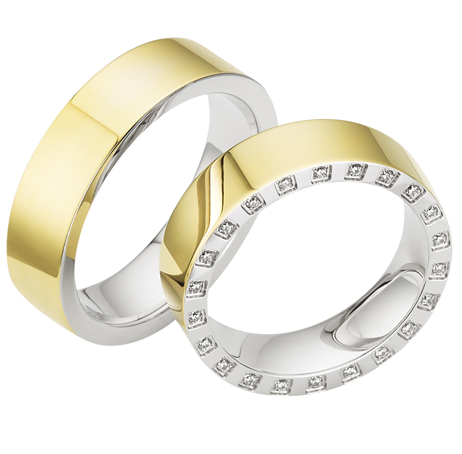 Trauring Weißgold Gelbgold mehrfarbig mit Brillant (TWSK 03)