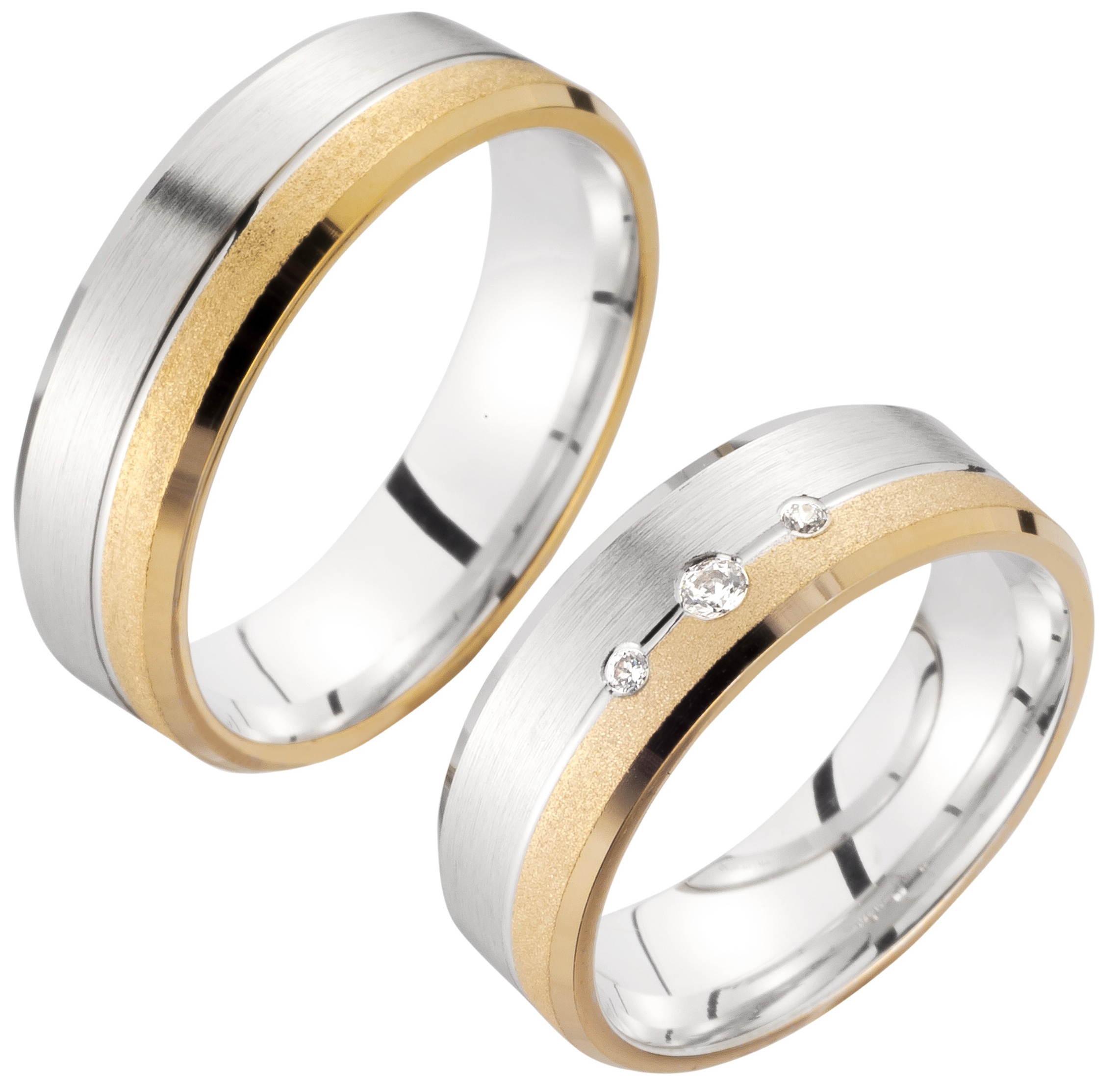 Trauring Weißgold Gelbgold mehrfarbig mit Brillant (TWSR 10)
