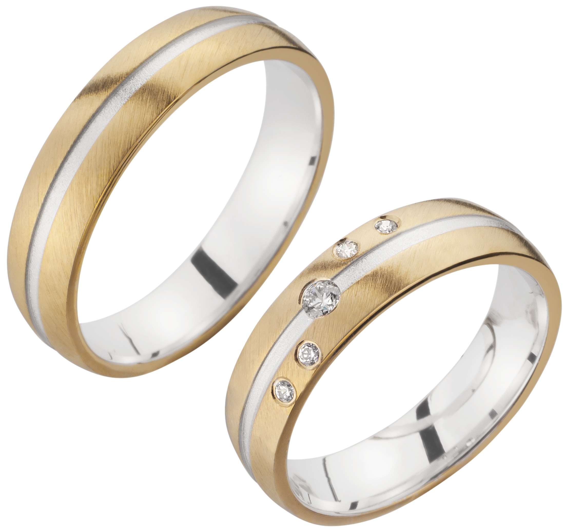 Der mehrfarbige TRAURINGWUNDER-Ring TWSR 21, die Fuge ist in Weißgold sandmatt, die beiden anderen Gelbgoldflächen in Gelbgold schräg feinmatt, hat eine Breite von 5mm und eine Höhe von 1,6mm. Der wunderschöne Damenring besticht durch mittig auf der Rille einen Brillant, versetzt von dem Stein jeweils 2 kleinere Brillanten mit einer Gesamtsteingröße von 0,09 carat in der Qualität TW/SI. Die Ringe sind innen und außen bombiert. Probieren Sie unser Modell TWSR 21 bei einem TRAURINGWUNDER-Partner vor Ort oder bestellen Sie die Ringe hier im Shop. Unsere Hotline steht Ihnen bei Fragen und für Beratung gerne zur Verfügung.