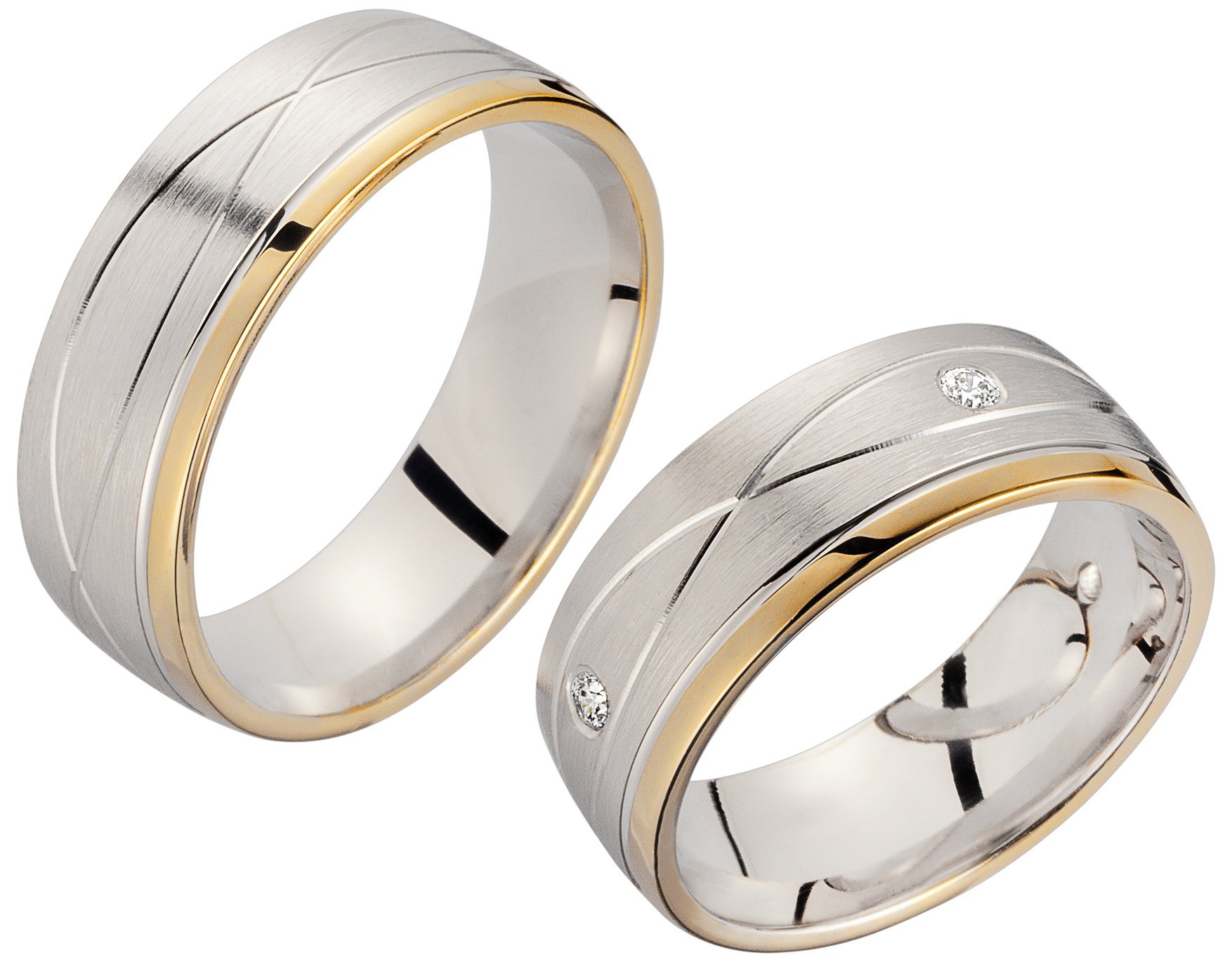 Trauring Weißgold Gelbgold mehrfarbig mit Brillant (TWSR 34)