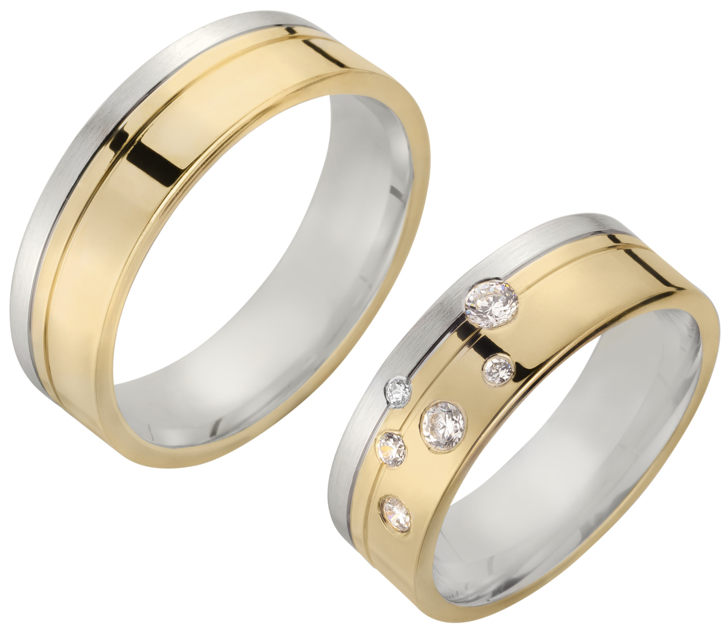 Der mehrfarbige TRAURINGWUNDER-Ring TWSR 43, breite Gelbgold Hochglanzfläche mit 2 Gelbgoldfugen und einem schmalen feinmattierten Weißgoldrand, hat eine Breite von 6,5mm und eine Höhe von 1,7mm. Der wunderschöne Damenring besticht durch 6 Brillanten eingerieben als kleiner Sternenhimmel mit einer Gesamtsteingröße von 0,18 carat in der Qualität TW/SI. Die Ringe sind innen bombiert und außen gerade. Probieren Sie unser Modell TWSR 43 bei einem TRAURINGWUNDER-Partner vor Ort oder bestellen Sie die Ringe hier im Shop. Unsere Hotline steht Ihnen bei Fragen und für Beratung gerne zur Verfügung.