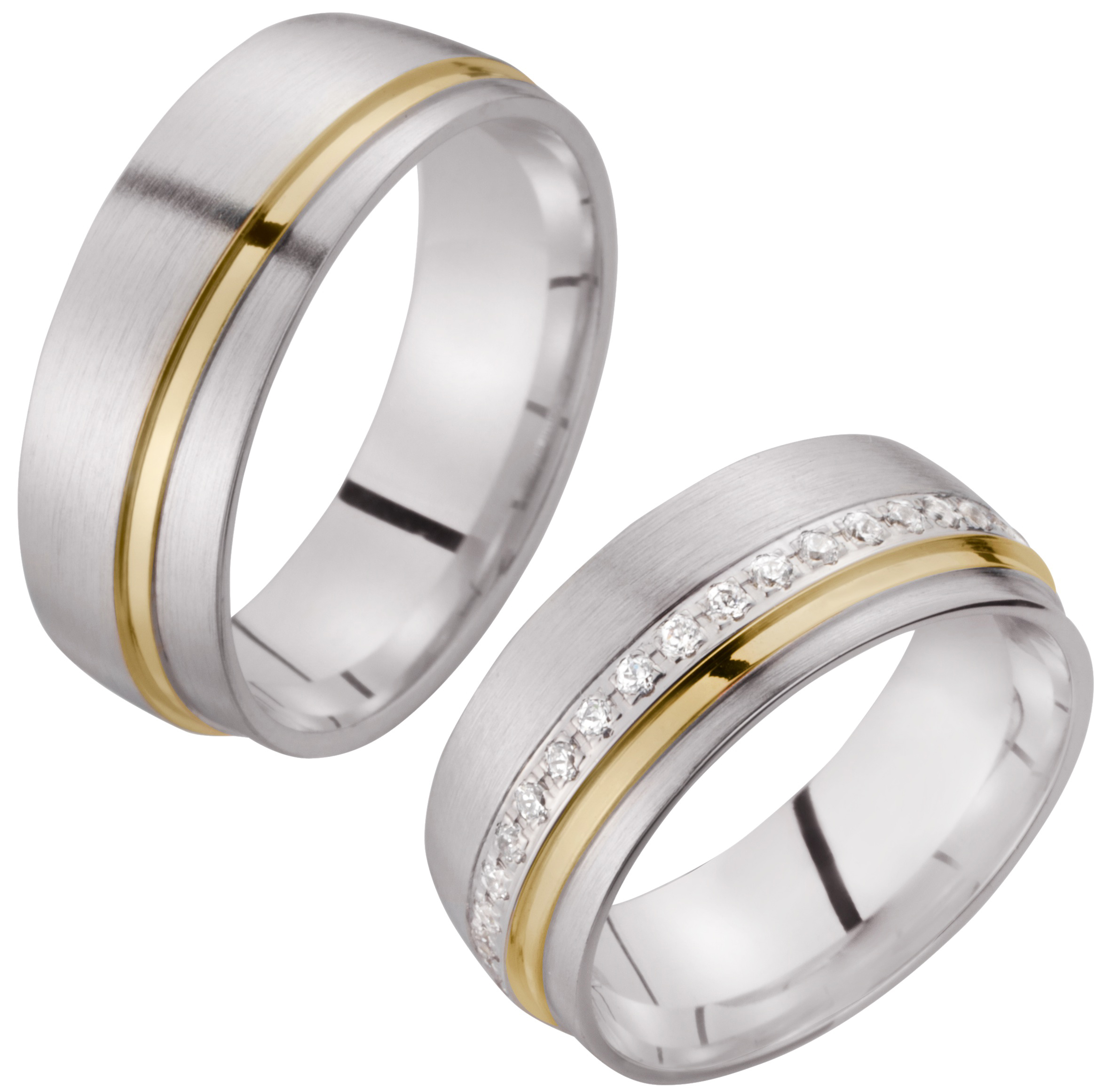 Trauring Weißgold Gelbgold mehrfarbig mit Brillant (TWSR 47)