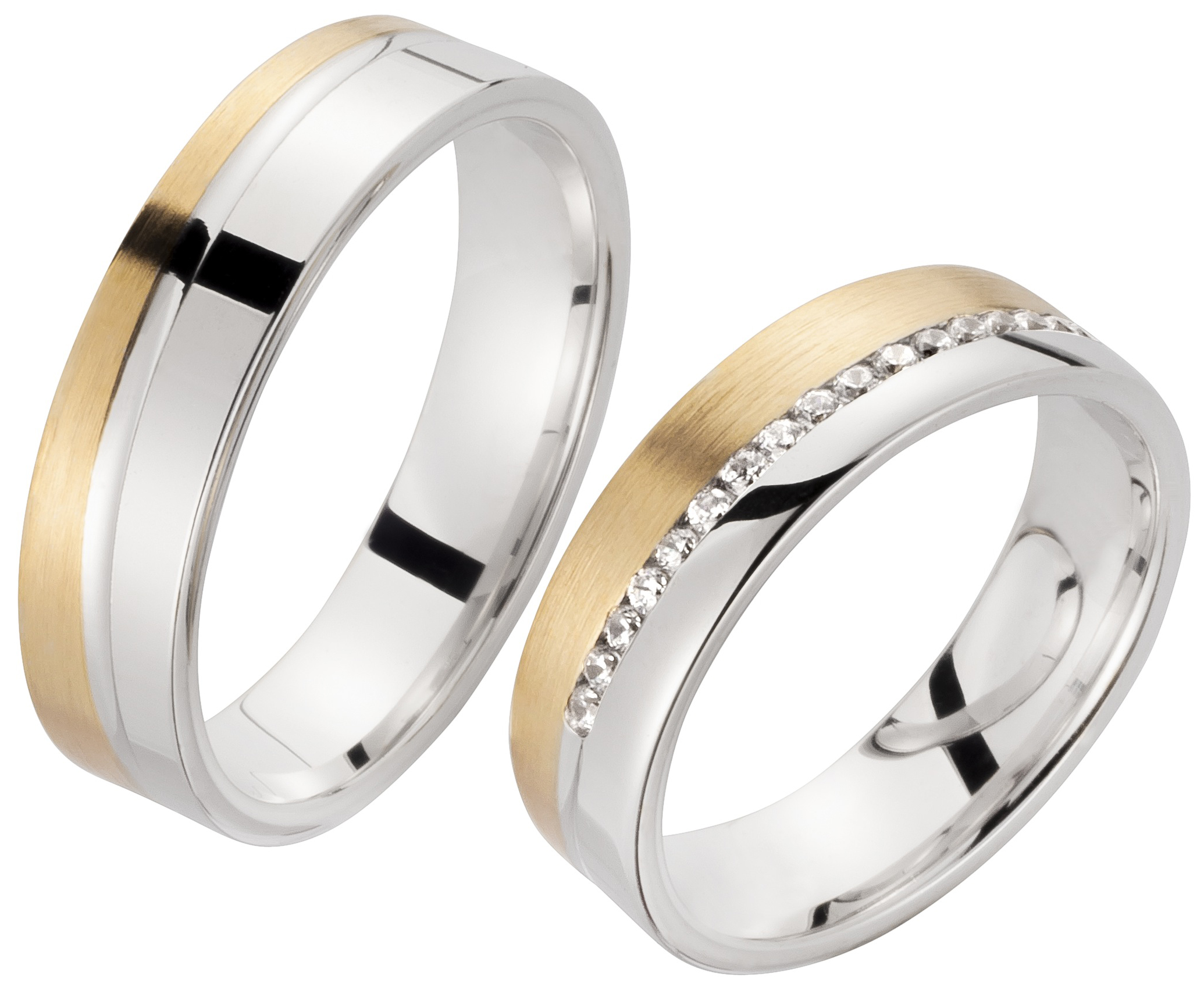 Trauring Weißgold Gelbgold mehrfarbig mit Brillant (TWSR 50)