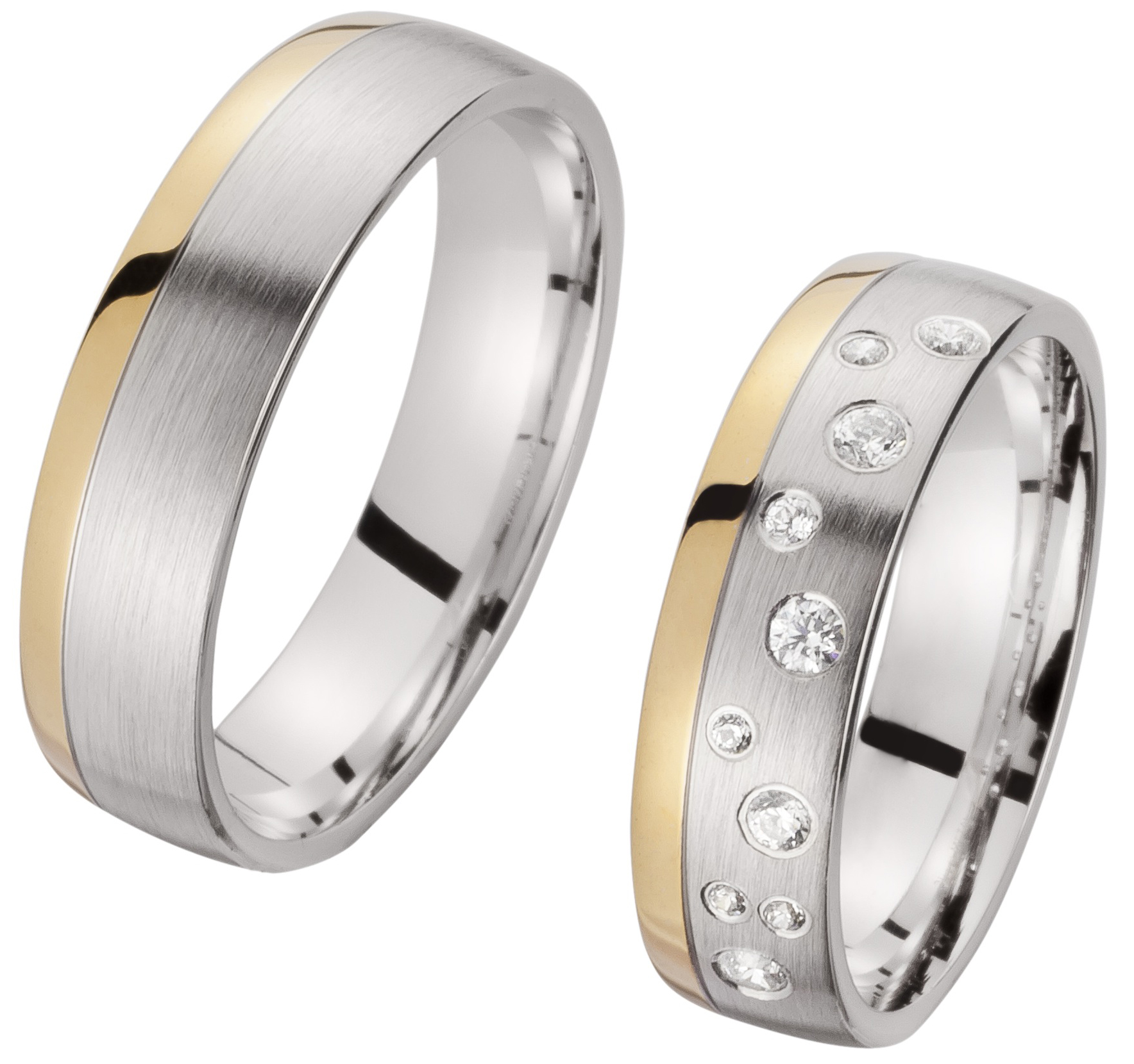 Trauring Weißgold Gelbgold mehrfarbig mit Brillant (TWSR 66)