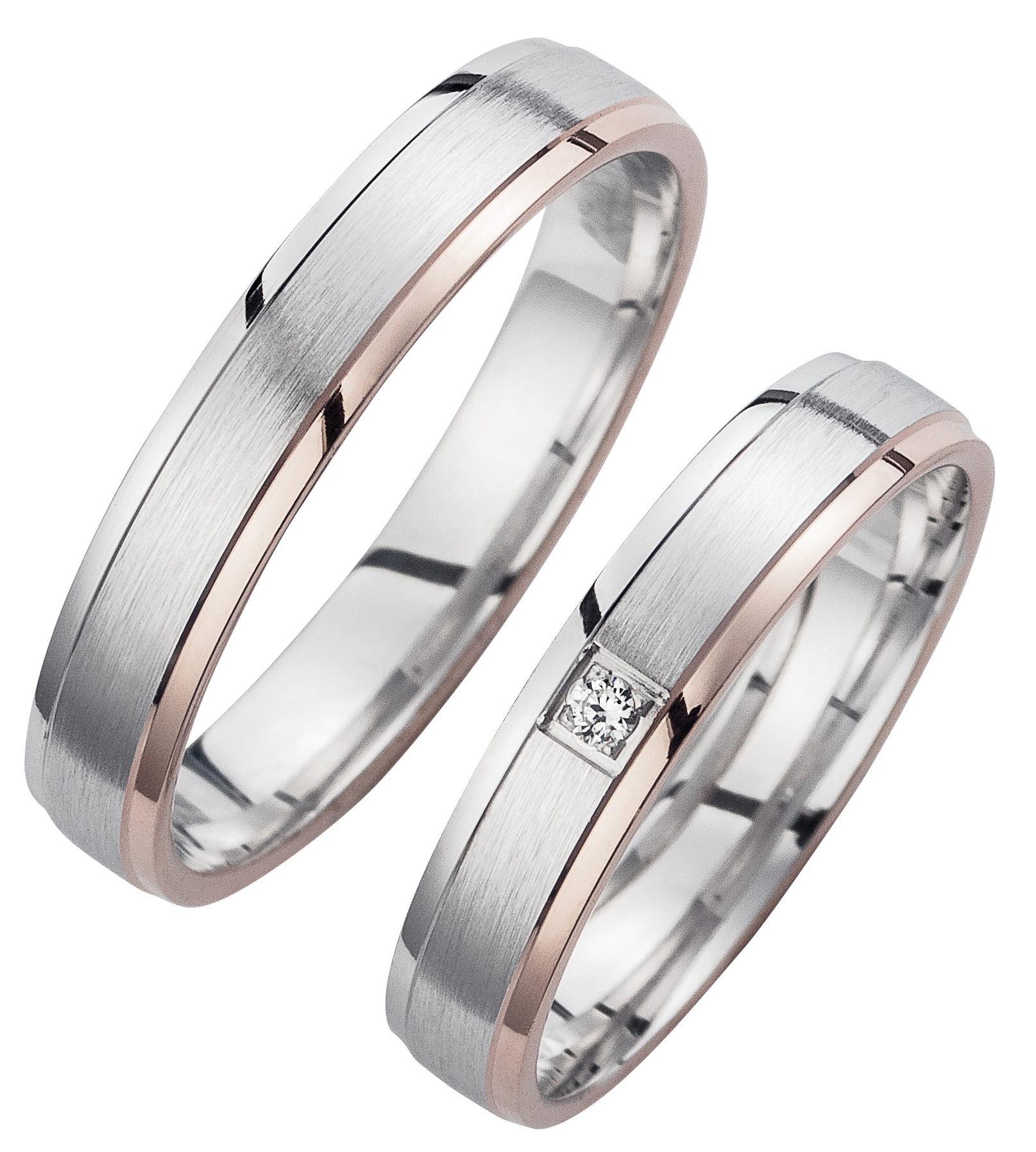 Trauring Weißgold Rotgold mehrfarbig mit Brillant (TWHR 22)