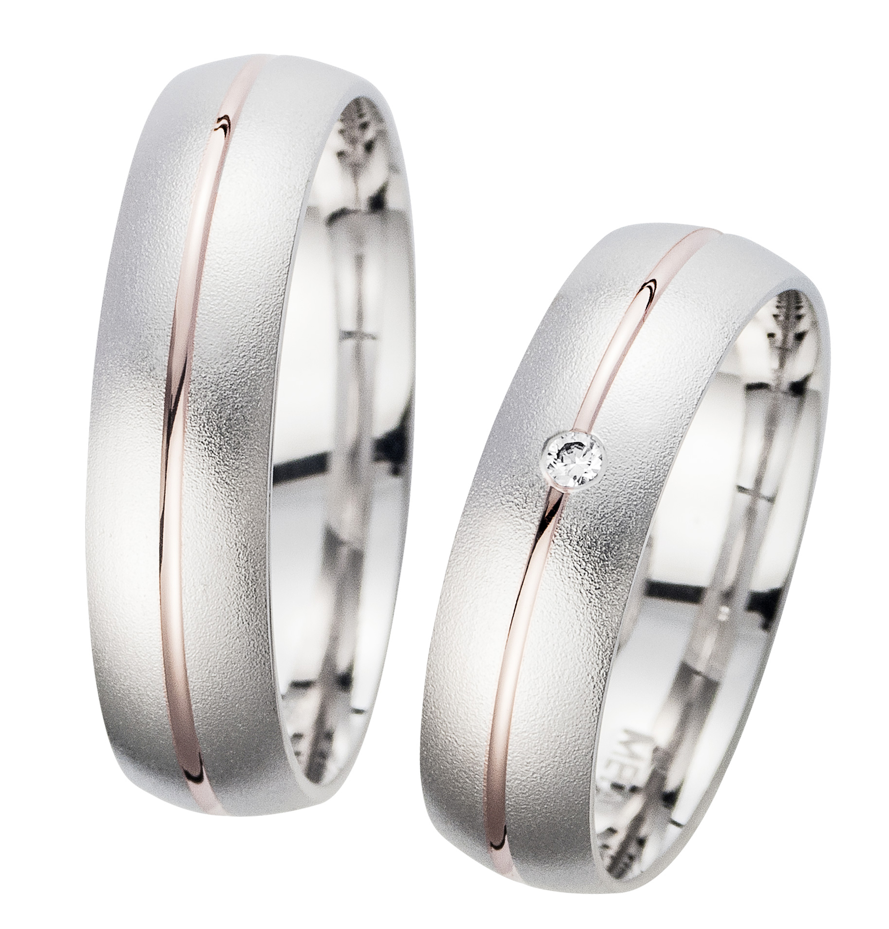 Der mehrfarbige TRAURINGWUNDER-Ring TWHR 85, Weißgold in einem groben Sandmatt, mit einer mittigen Rotgold Hochglanzfuge, hat eine Breite von 5,5mm und eine Höhe von 1,4mm. Der wunderschöne Damenring besticht durch 1 Brillanten mittig eingerieben eingefasst mit einer Gesamtsteingröße von 0,02 carat in der Qualität TW/SI. Die Ringe sind innen und außen bombiert. Erleben Sie unser Modell TWHR 85 bei einem TRAURINGWUNDER-Partner vor Ort oder bestellen Sie die Ringe hier im Shop. Unsere Hotline steht Ihnen bei Fragen und für Beratung gerne zur Verfügung.
