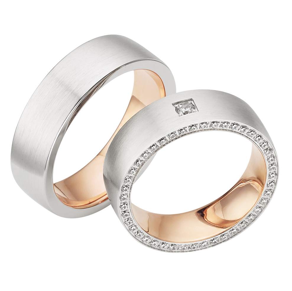 Trauring Weißgold Rotgold mehrfarbig mit Brillant (TWSK 04)