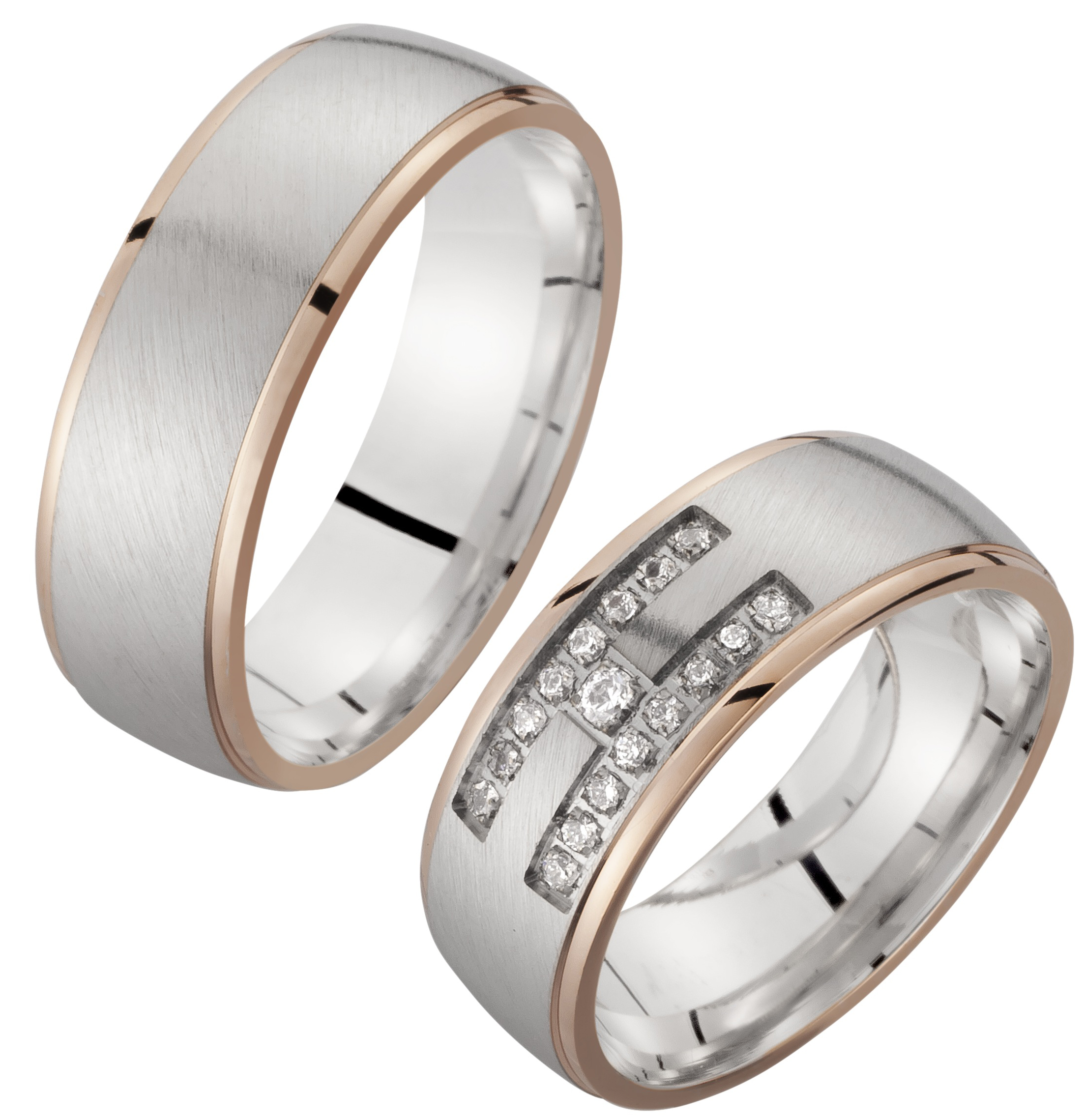 Trauring Weißgold Rotgold mehrfarbig mit Brillant (TWSR 02)