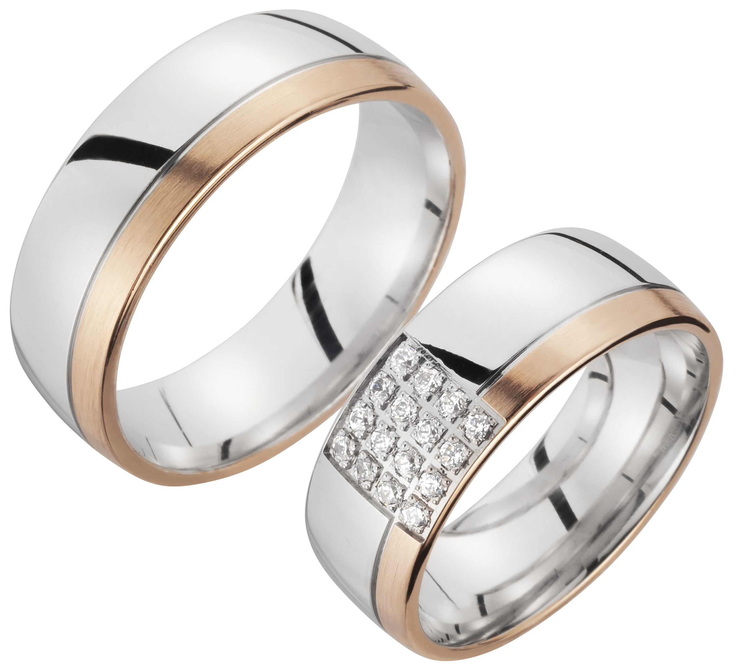 Trauring Weißgold Rotgold mehrfarbig mit Brillant (TWSR 07)