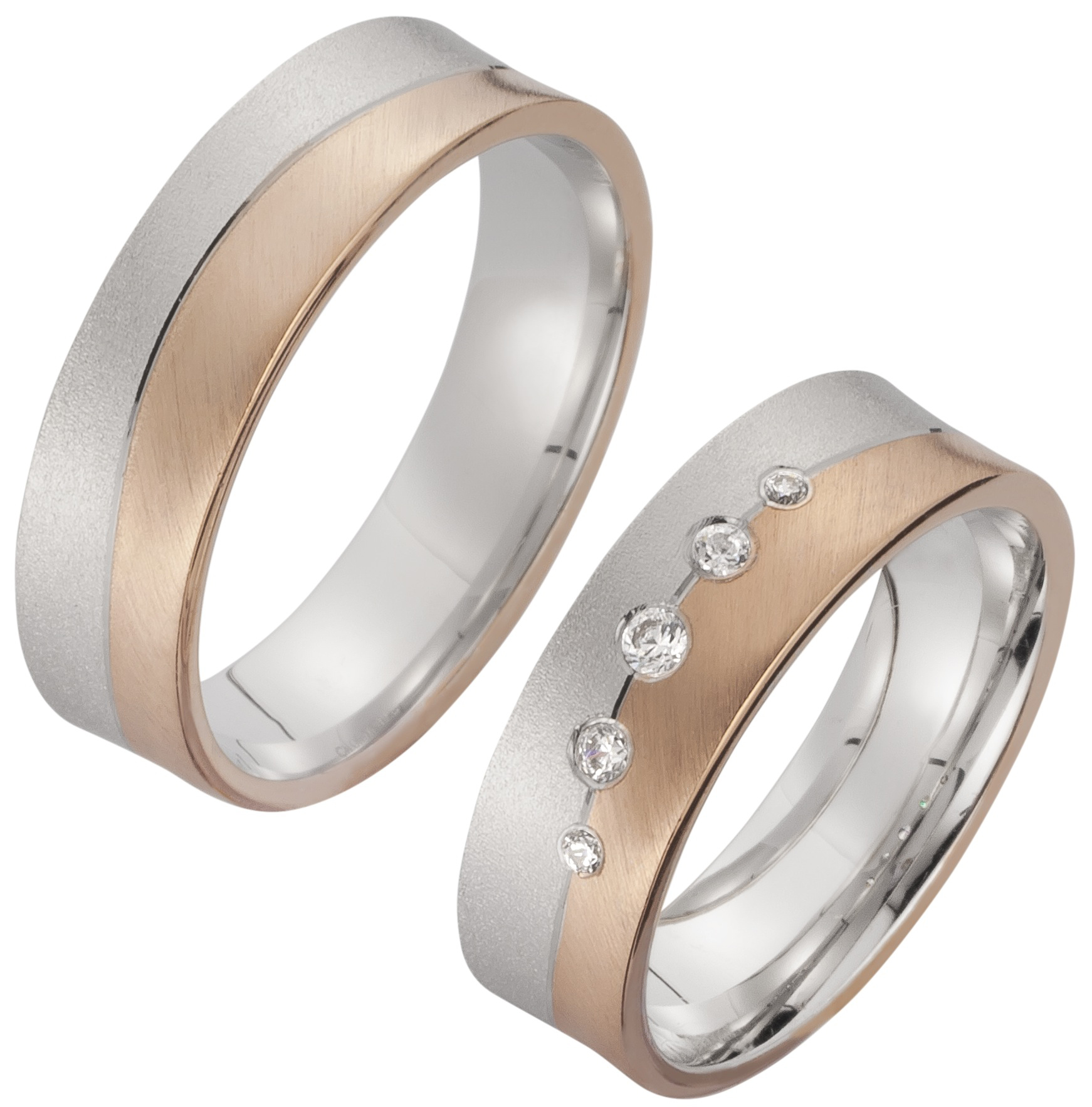 Trauring Weißgold Rotgold mehrfarbig mit Brillant (TWSR 16)