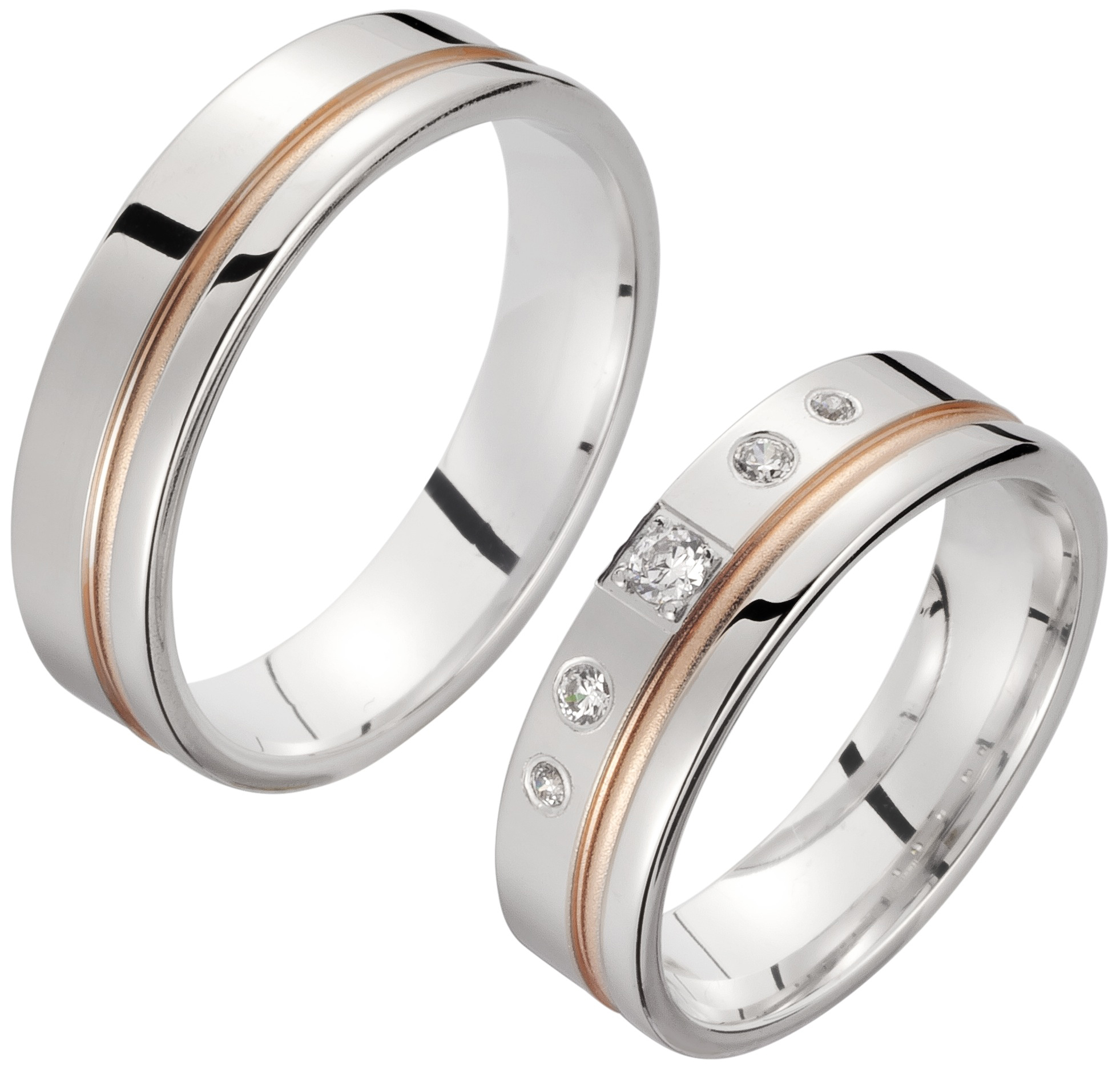 Trauring Weißgold Rotgold mehrfarbig mit Brillant (TWSR 39)